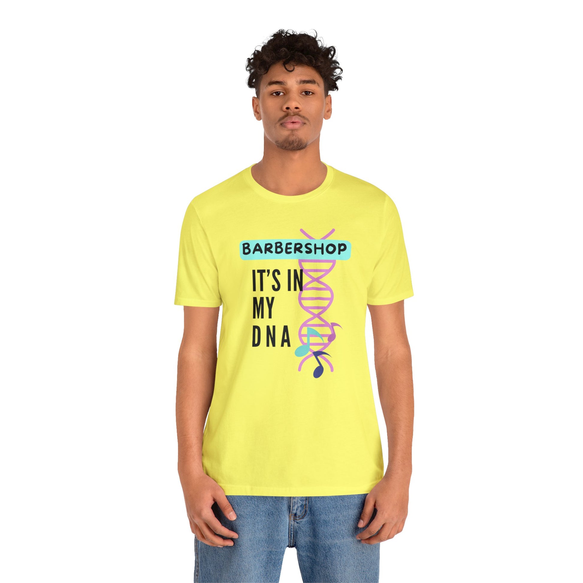 Crafted with comfort and style, this shirt is a must-have for the true barbershop enthusiast. Whether you're a descendant of barbershop legends or a newcomer embracing the tradition, wear your musical heritage proudly. The shirt's distinctive design celebrates the genetic code of harmonies, making it an ideal choice for rehearsals, performances, or casual outings.
