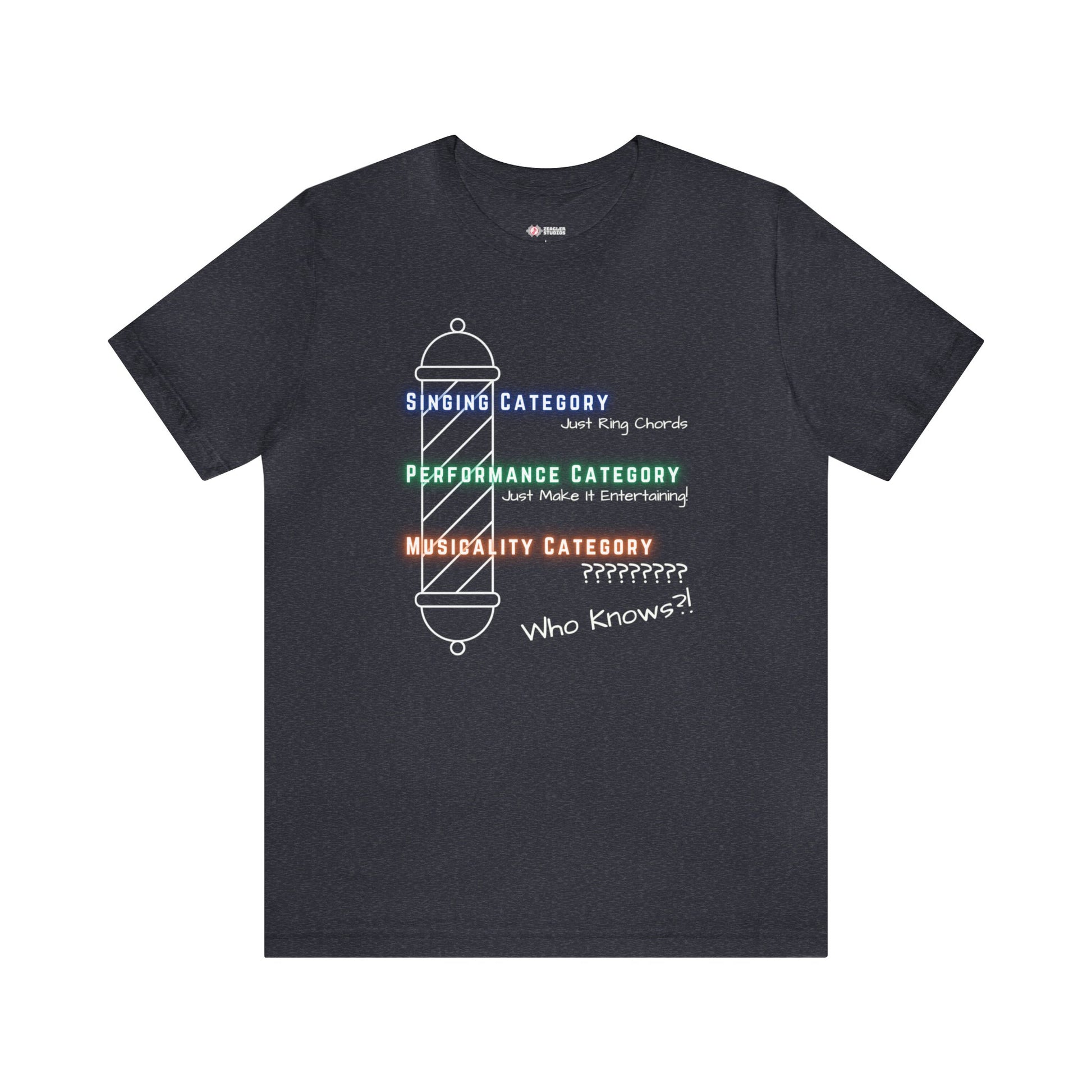 Whether you're a seasoned barbershopper or someone intrigued by the enigma of the musicality category, wear your curiosity with pride. The shirt's clever design adds a playful element to your ensemble, making it an ideal choice for competitions, rehearsals, or any day you want to share a chuckle with your fellow musicians.